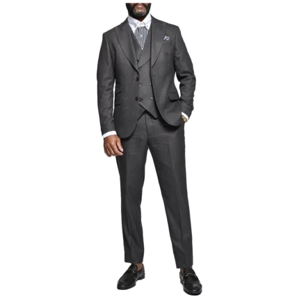 Design: Peak Lapel single breasted 3 piece suit and a two-button front closure