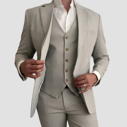 Mens Three Piece Beige Linen Suit