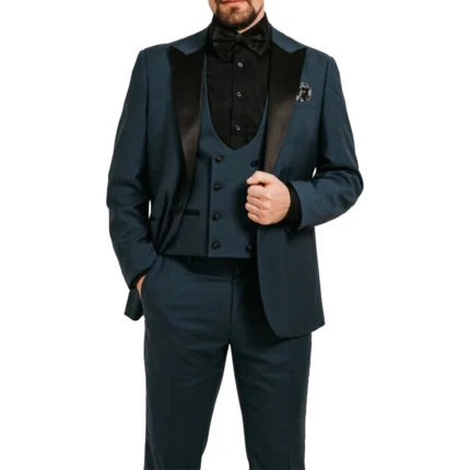 Slim Men’s Black Peak Lapel Tuxedo Suit