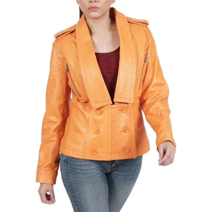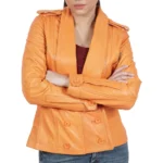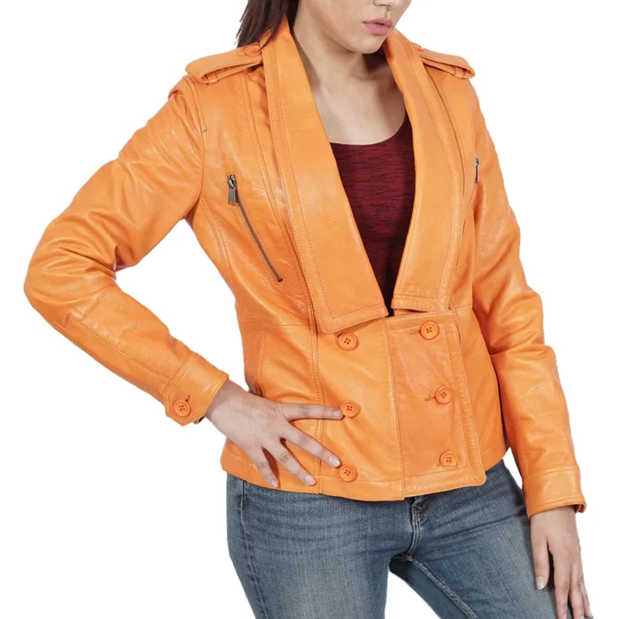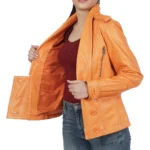 Embrace the vibrant energy of our Orange Blazer Leather Jacket! This jacket is designed to make you the center of attention. Crafted from premium leather, it promises durability and a luxurious feel. Perfect for any occasion, whether it’s a casual outing or a formal event, this jacket will enhance your wardrobe effortlessly.
