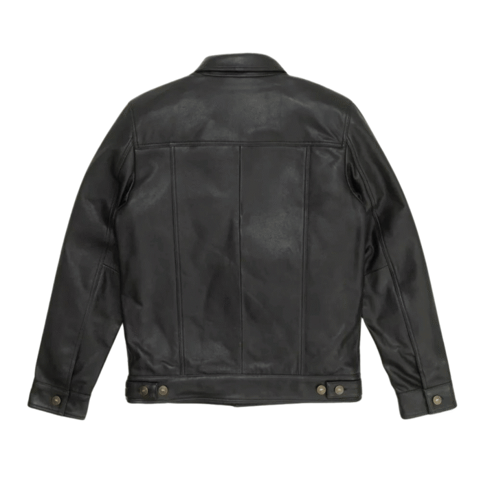 Step into a world of style with our Tom Black Leather Trucker Jacket. Crafted from Genuine Leather, it’s a versatile wardrobe staple. The Shirt collar adds a touch of sophistication, while the four patch pockets provide a functional and fashionable element. The classic black color ensures easy pairing with various outfits, making it a go-to choice for casual outings. The button closure adds an edgy vibe to your look. Elevate your style with this timeless Trucker Leather Jacket that combines comfort and fashion seamlessly. Pair it with a white t-shirt, denim jeans, and sneakers for a laid-back yet stylish look.