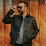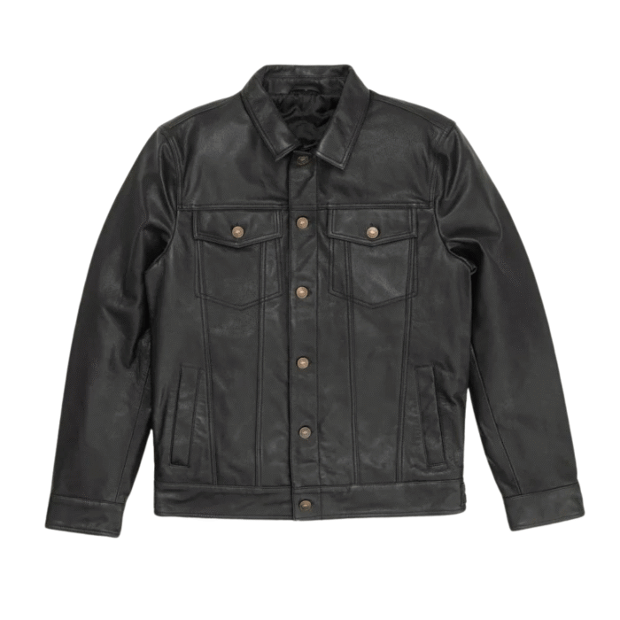 Classic Black Trucker Leather Jacket Mens